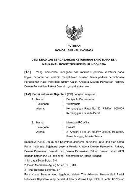 Putusan Nomor 51 Phpu C Vii 2009 Demi Keadilan