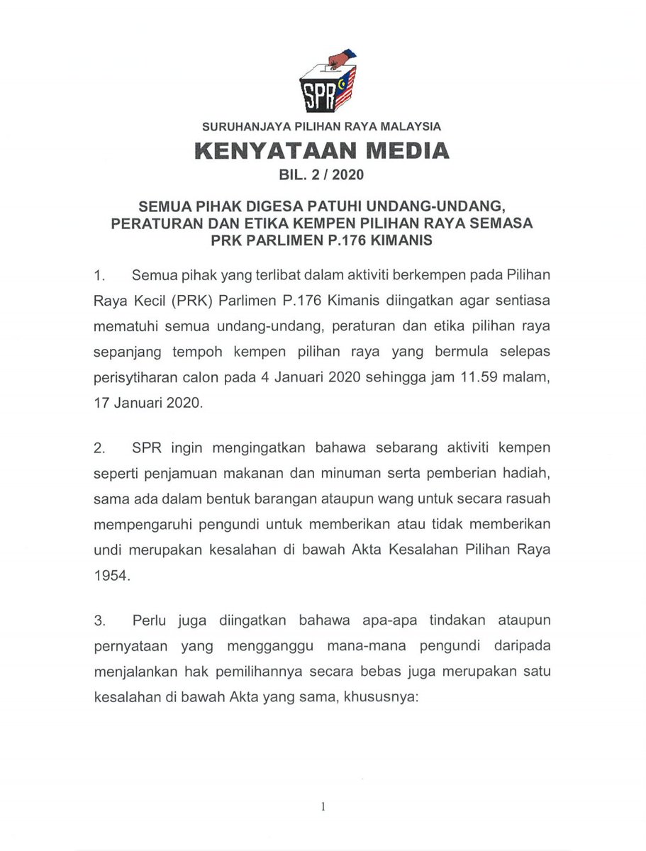 Suruhanjaya Pilihan Raya Malaysia A Twitter Kenyataan Media Semua Pihak Digesa Patuhi Undang Undang Peraturan Dan Etika Kempen Pilihan Raya Semasa Prk Parlimen P 176 Kimanis Https T Co 78ojano1m1