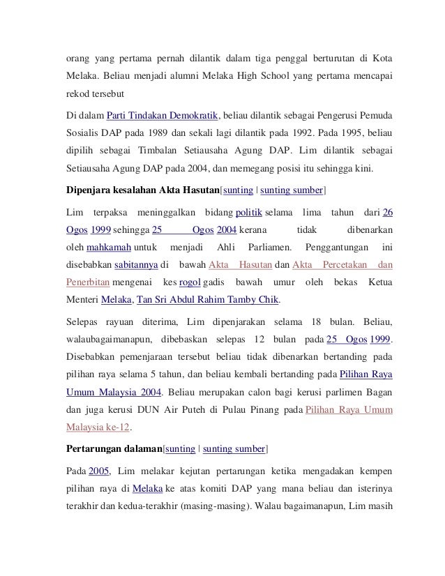 Lim Guan Eng Daripada Wikipedia ensiklopedia bebas. 19 orang antara 70 dan 79 dan empat orang adalah berumur 80 tahun ke atas adalah satu bentuk penghinaan.
